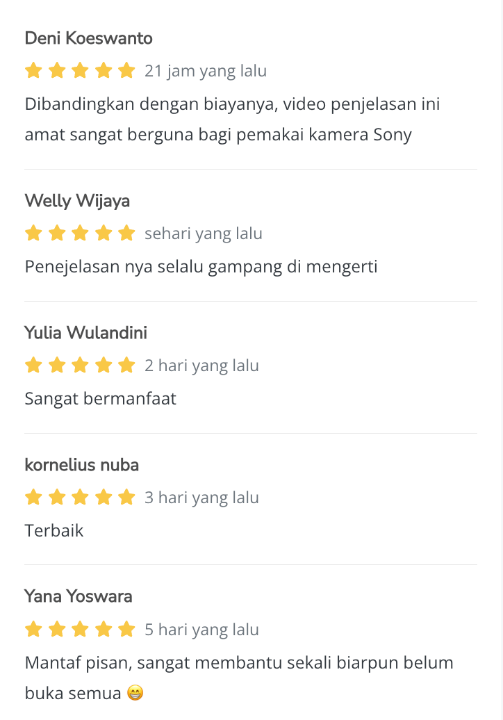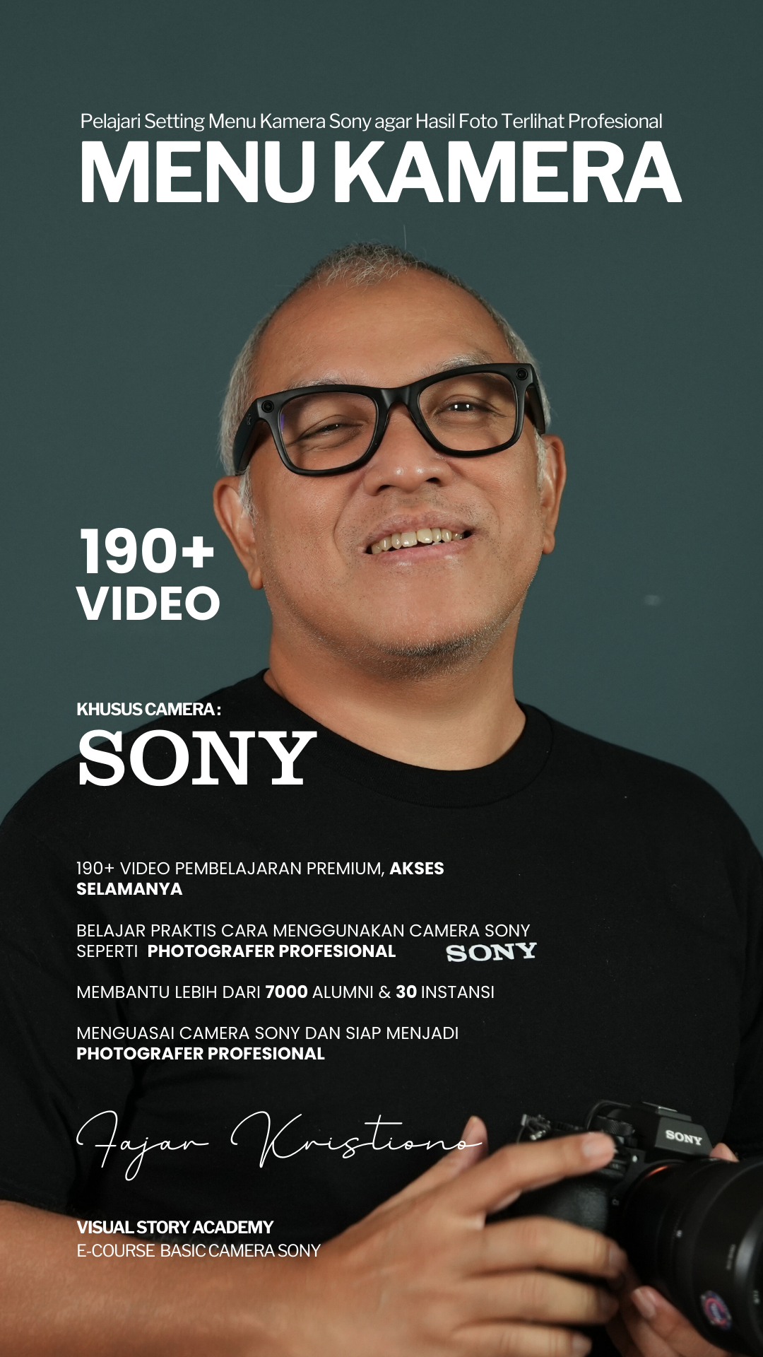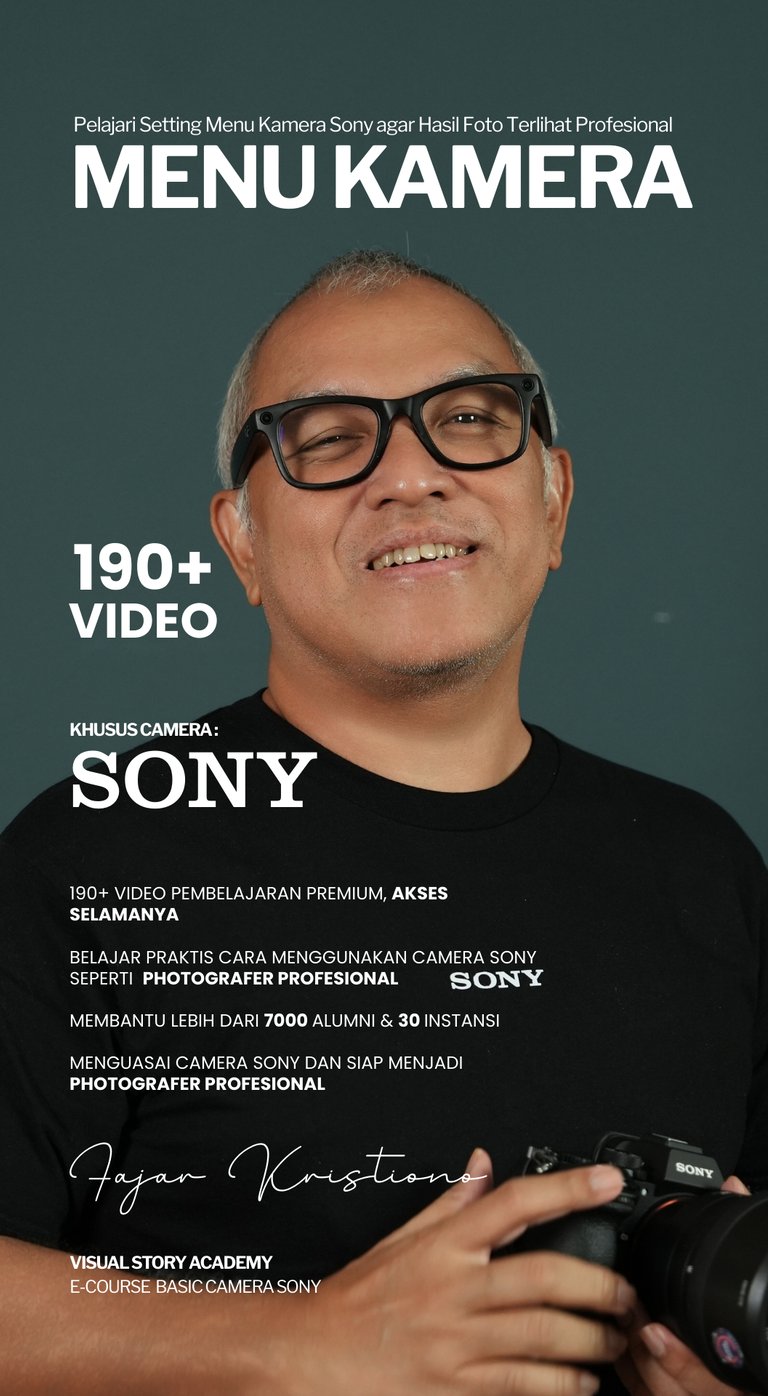 Belajar langsung dari praktisi dan Pengajar Professional, Fajar Kristiono. Membawa 10 tahun pengalaman sebagai Official Sony Indonesia Alpha Professional Photographer langsung ke layar Anda